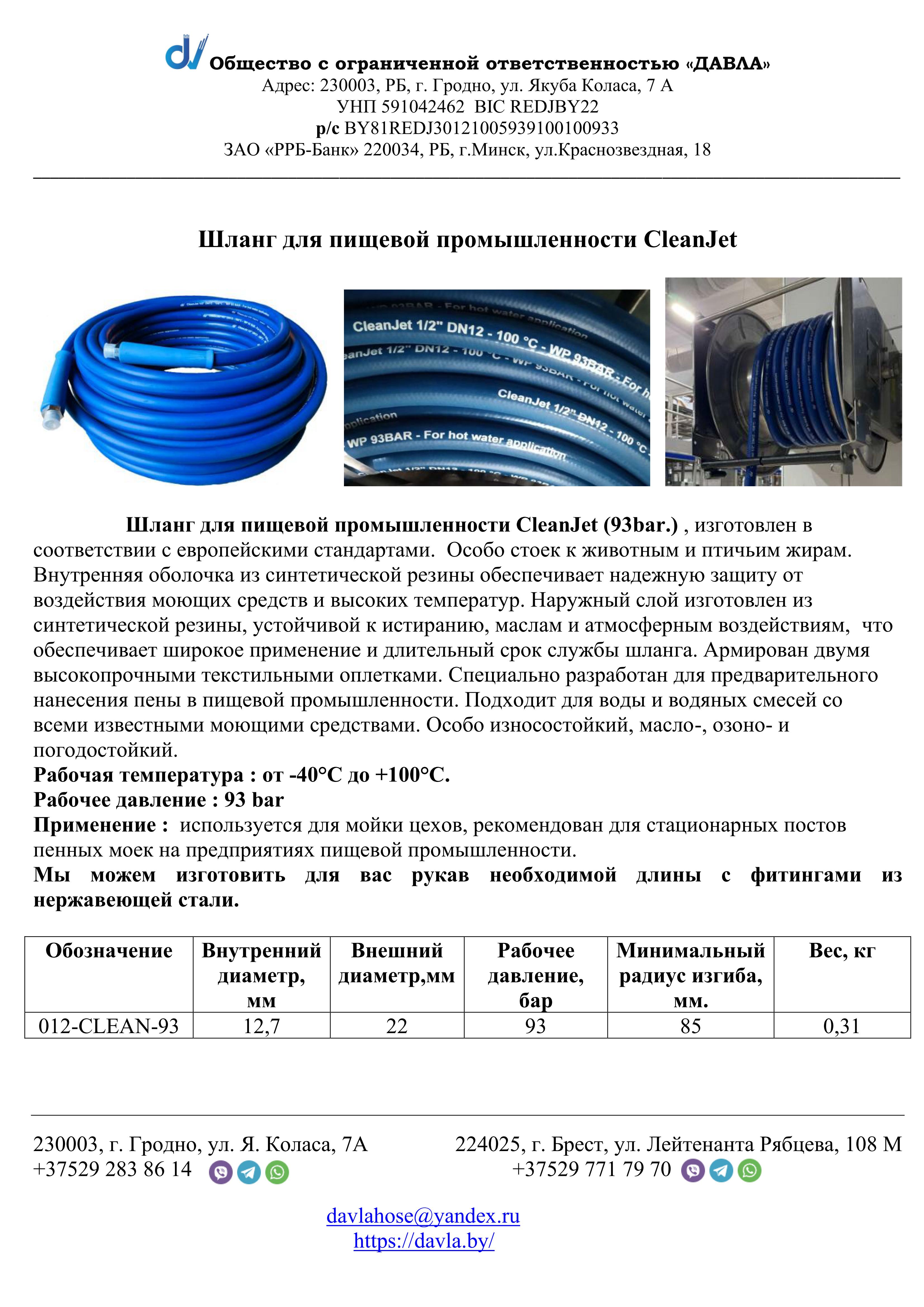 РВД DN12-CLEAN (93 атм)